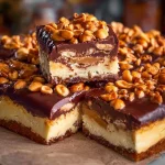 Cheesecake with Chocolate Glaze and Peanuts is a heavenly dessert that combines the creamy richness of cheesecake with a decadent chocolate glaze and crunchy peanuts on top. This indulgent treat is perfect for special occasions or just to satisfy your sweet cravings. With its delightful balance of flavors and textures, it’s sure to impress family and friends alike. Let’s dive into this scrumptious recipe!