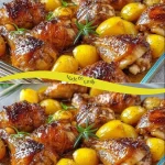 A comforting dish combining succulent chicken thighs and tender roasted potatoes, perfect for busy weeknights or family gatherings.