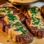 Juicy Steak with Creamy Garlic Sauce is a true delight for meat lovers. The combination of a perfectly cooked ribeye steak and a luxurious, creamy garlic sauce creates a dish that feels special enough for a dinner party yet easy enough for a weeknight meal. This recipe brings the best flavors together, making it an easy go-to for impressing your family or guests. The rich sauce pairs beautifully with the juicy steak, elevating it to a new level of deliciousness.